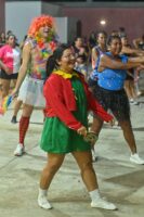 Os participantes curtiram coreografias inspiradas em clássicos carnavalescos e ritmos latinos, além de caprichar nas fantasias e nas poses, no ambiente “instagramável” criado especialmente para o momento. Entre os foliões, Suelem Magave chamou atenção vestida de ‘Chiquinha’ (do seriado Chaves). Para ela, além dos benefícios físicos, o evento fortalece laços sociais: