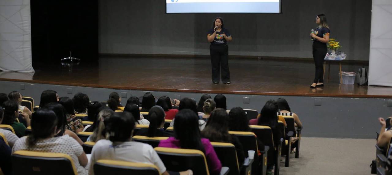 O tema “Manejo de Crises no Contexto Educacional com Alunos da Educação Especial” foi apresentado pela psicopedagoga Tatiane Sousa e pela psicóloga Kerolay Queiroz, servidoras do Teamarr.
